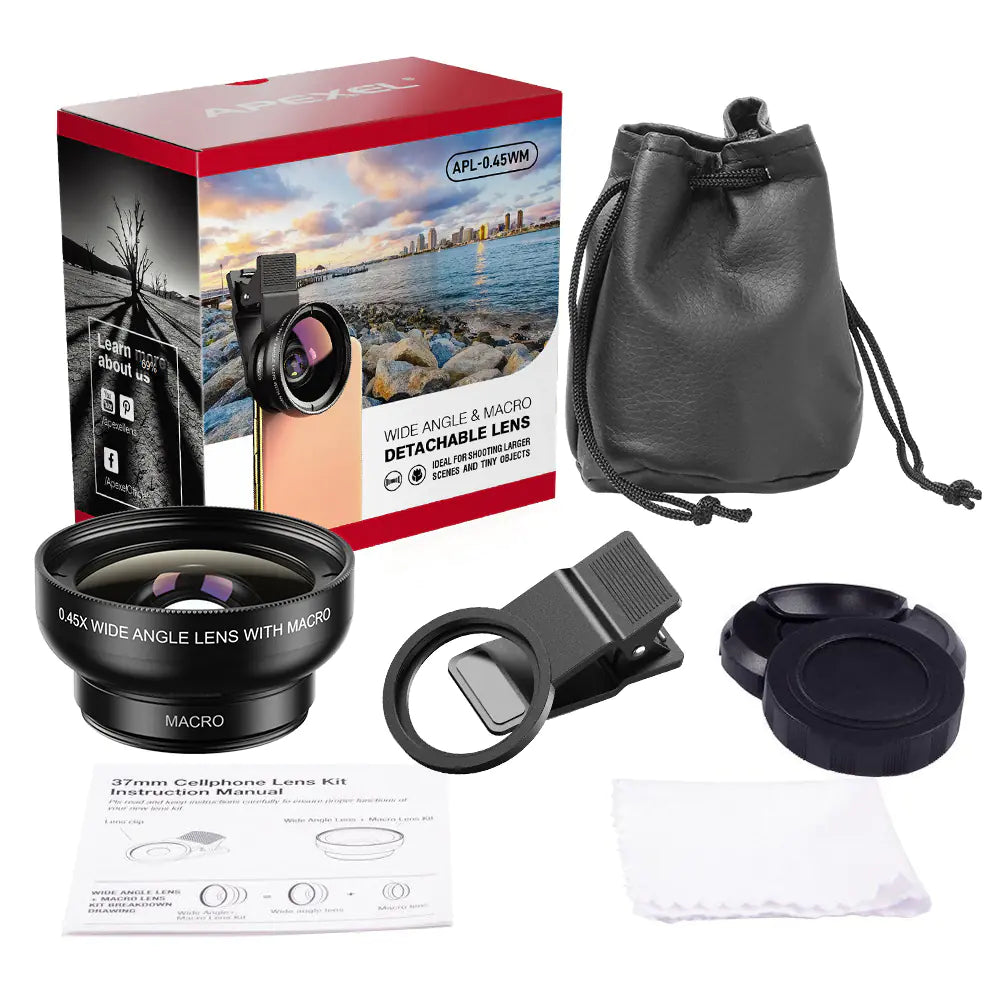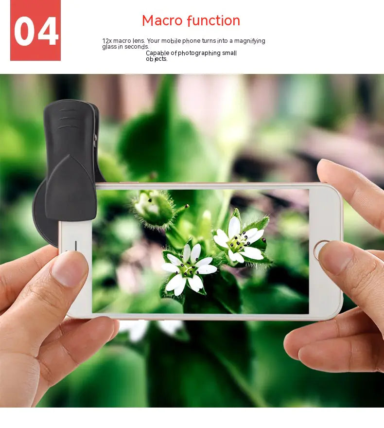 Upgrade your smartphone photography with this universal 0.45x wide angle and 12.5x macro lens. Compatible with most phones, this clip-on lens delivers stunning wide-angle shots and detailed macros. Easy to attach and perfect for landscapes, portraits, and close-up photography. Includes 1 phone lens.